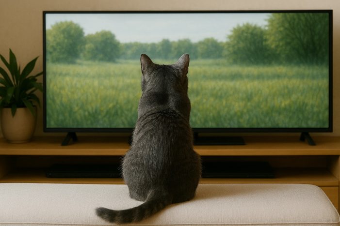 うちには2匹の猫がいますが、どんなもんかとテレビ画面でつけてあげると